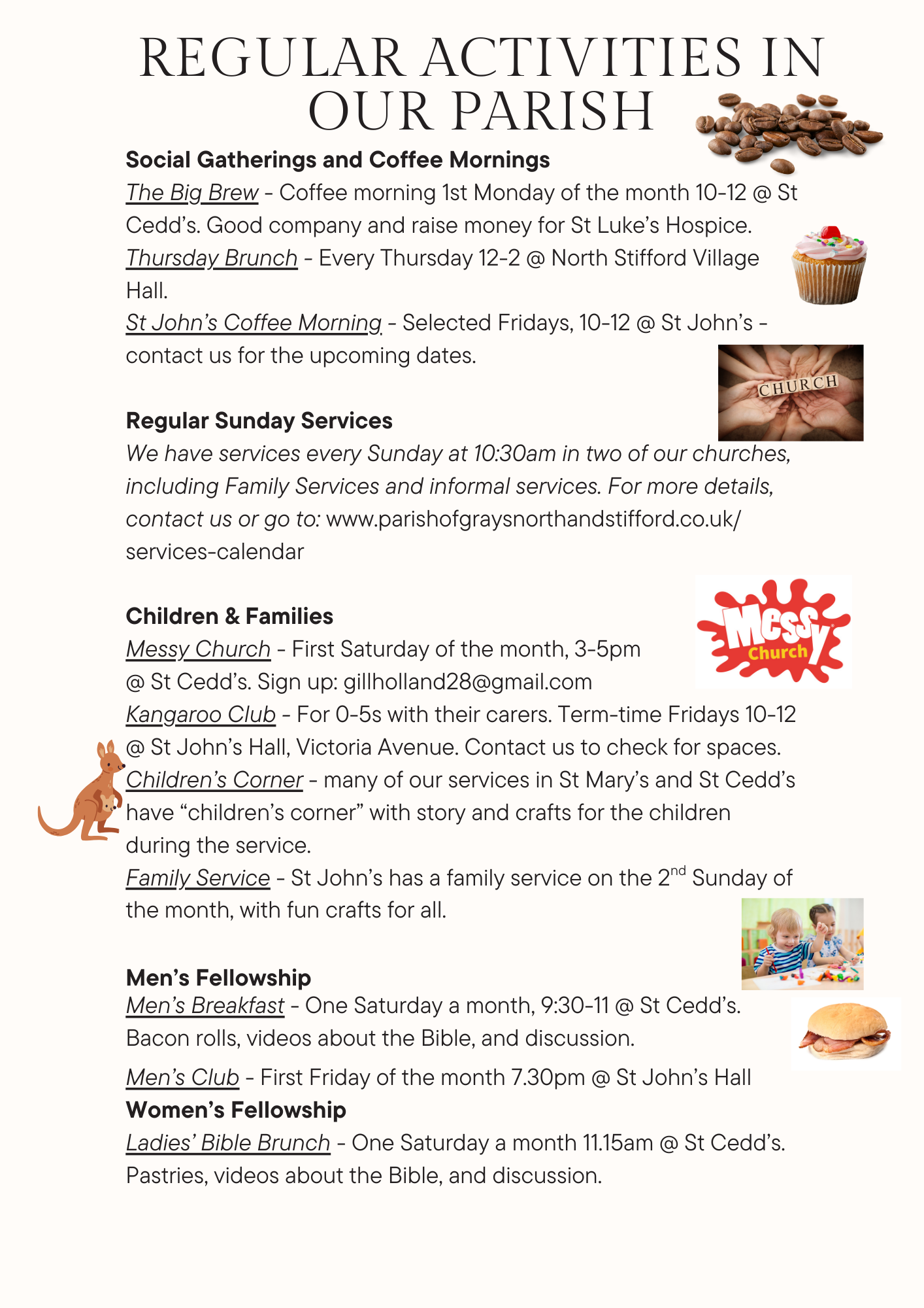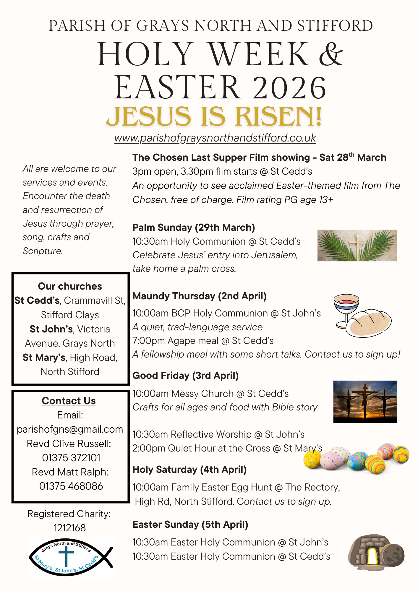 We are one parish that includes the communities of North Stifford and Stifford Clays both following the message and life of Jesus Christ.